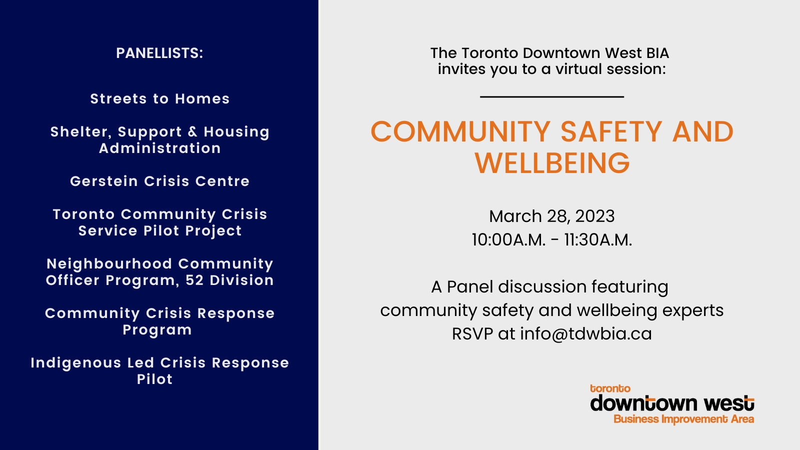 Join us for a virtual discussion moderated by mental health educator, Rebecca Higgins with a panel of community safety and wellbeing experts servicing Toronto. This session takes a holistic approach to proactively addressing important issues impacting our community, such as mental health, addiction, homelessness, safety and wellbeing.